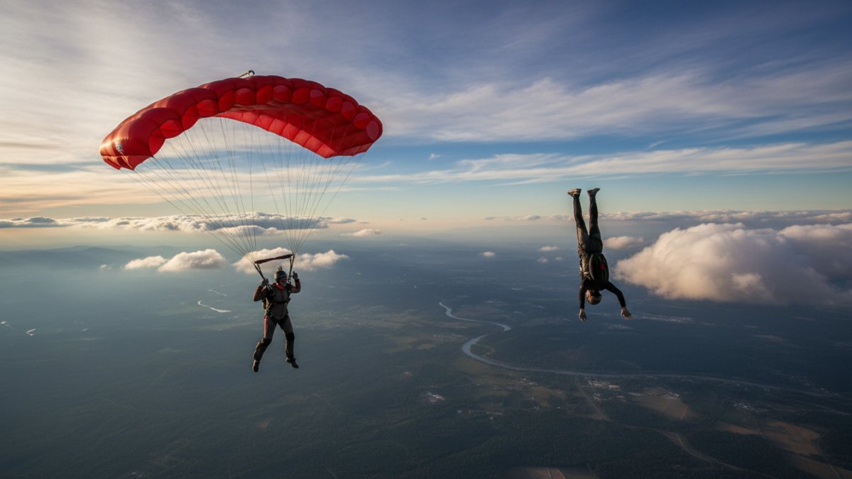 Pozycja ciała zmienia wszystko. Skoczek spadający głową w dół, z ramionami wzdłuż tułowia — czyli w tzw. pozycji headdown — wystawia na działanie powietrza wielokrotnie mniejszą powierzchnię przekroju. Efekt jest natychmiastowy: prędkość terminalna wzrasta do 260-300 km/h, a u doświadczonych zawodników trenujących speed skydiving przekracza nierzadko 350-400 km/h. Rekord świata w swobodnym spadaniu bez specjalnego kombinezonu wynosi ponad 500 km/h.